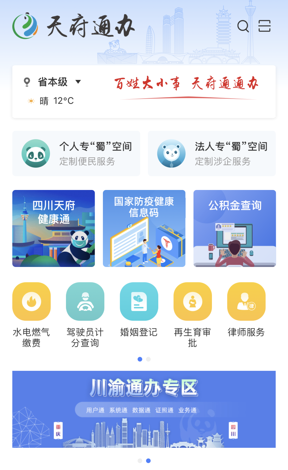据记者了解,“天府通办”APP是由四川省大数据中心研发打造,是四川省“一网通办”移动端总门户,为全省自然人和法人提供一站式网上办事渠道。2020年9月29日,“天府通办”全新版本正式上线,开通了包括人社服务、公积金服务、交管服务等14个综合服务专区。