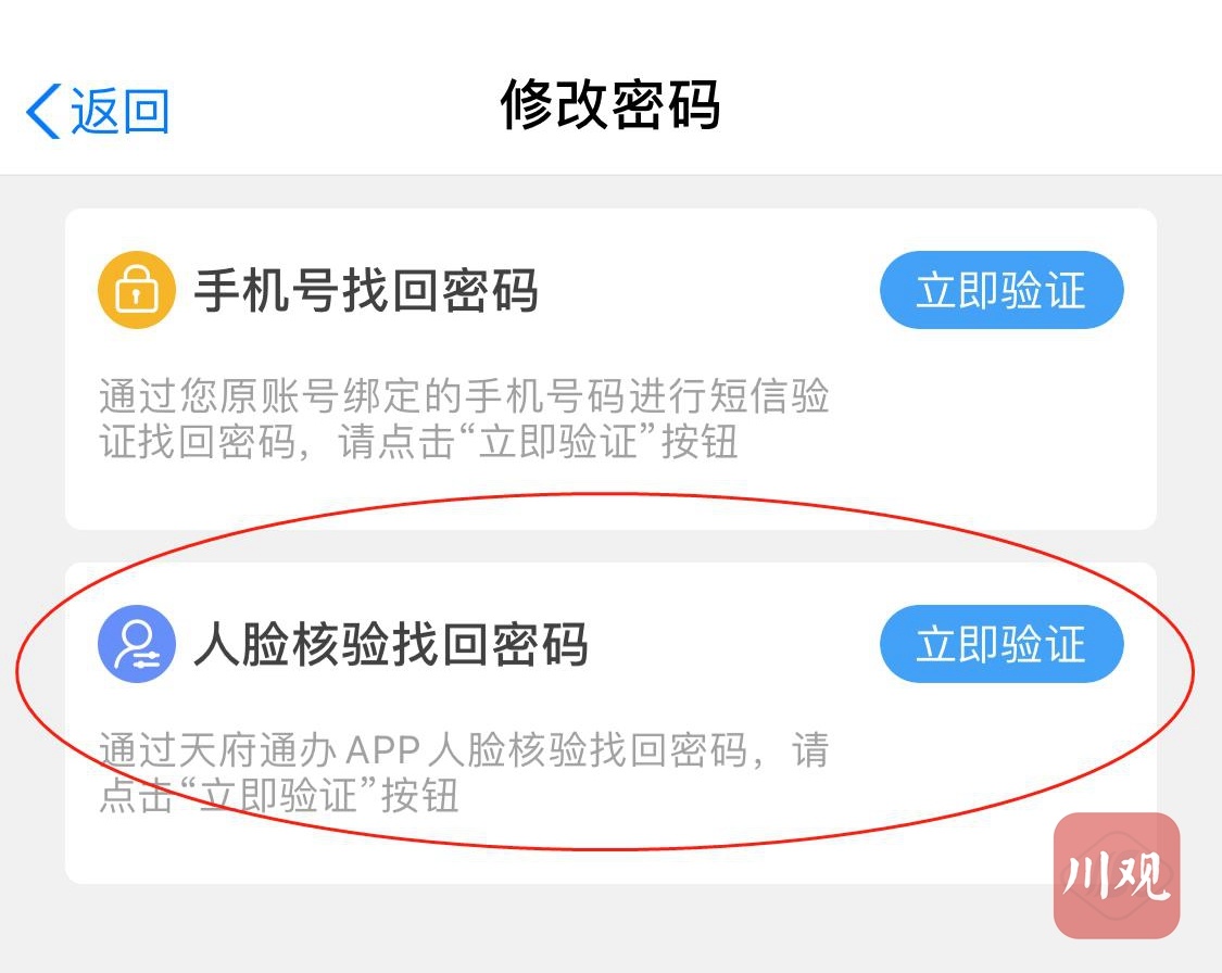 对于如何解决这个问题,该负责人介绍,目前天府通办已经开通了账户找回功能,可以通过人脸识别找回账户,并修改绑定手机号码。如果确认自己已经注册了天府通办账户,但又不知道密码和绑定手机号码,可以在登录页面点击“忘记密码”,然后选择“人脸核验找回密码”。用户可以通过这个方式重新设置登录密码,登录之后在“设置”中可以修改绑定手机号码。