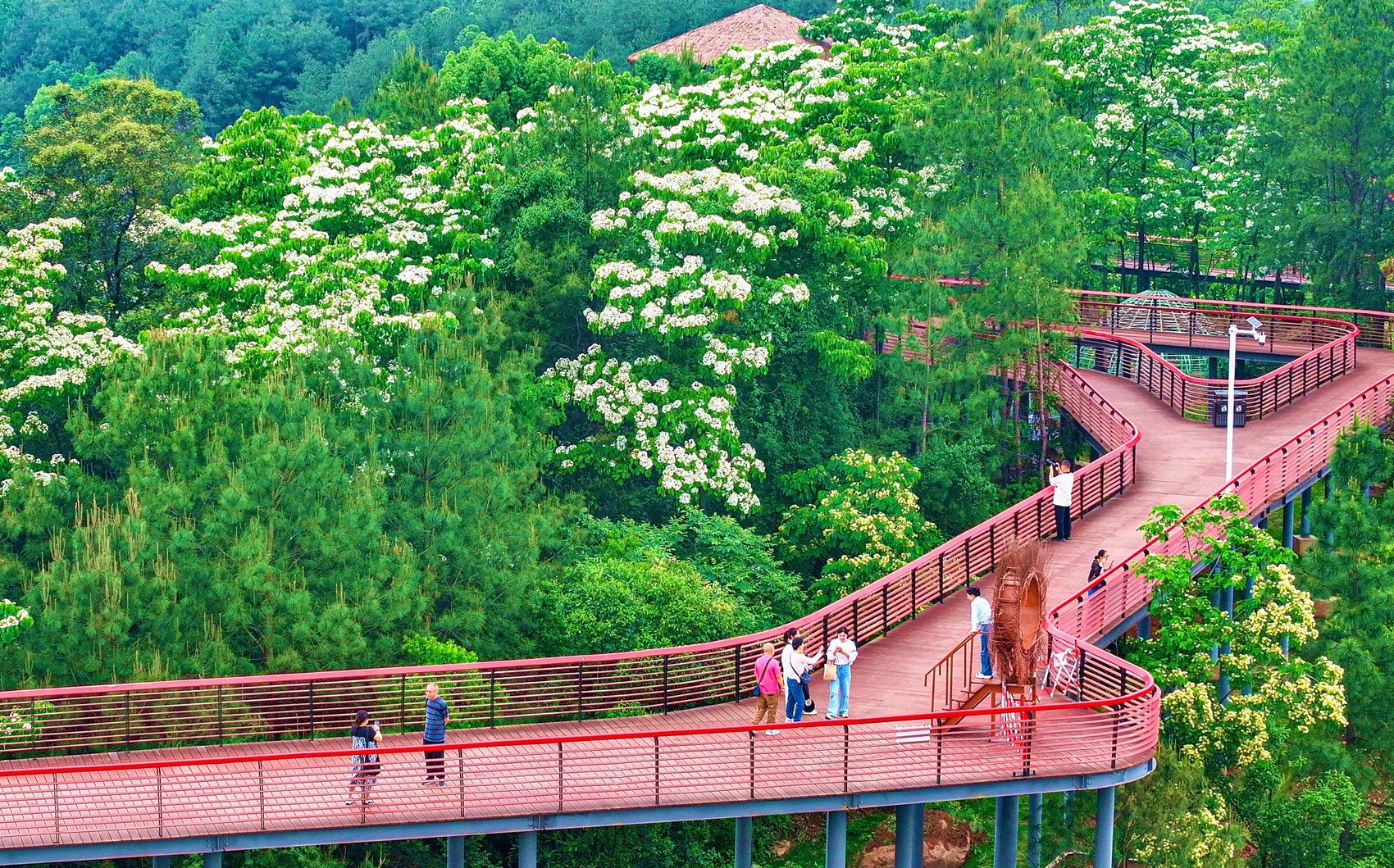 在仁寿县禾加镇五龙山的桐花谷,游客正在赏花游玩。