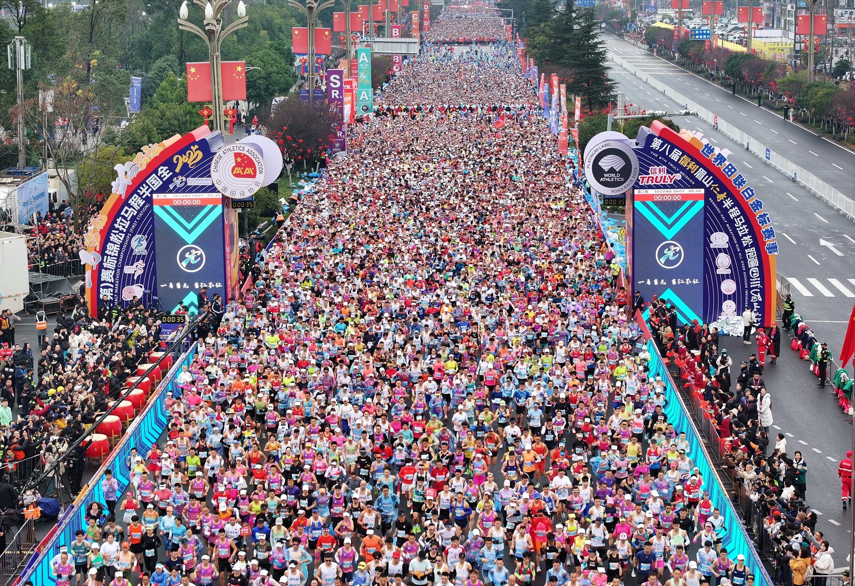 2025全国半程马拉松锦标赛(第1站)在仁寿县激情开赛,选手们正在参赛。