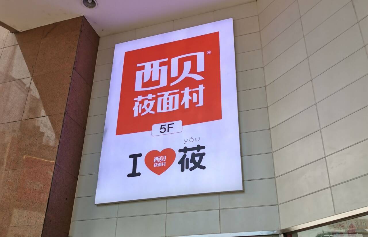 成都一家购物中心悬挂的西贝莜面村巨幅广告牌。