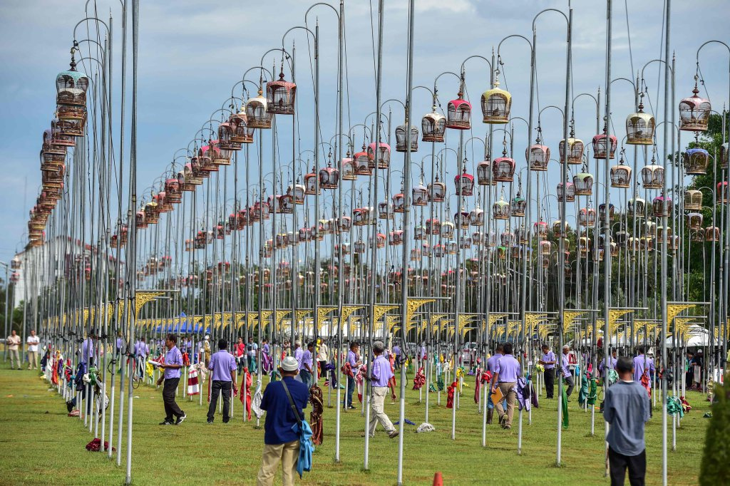 当日,泰国南部那拉提瓦府举行一年一度的鸟鸣比赛。约1250只来自泰国、马来西亚和新加坡的鸟儿为比赛献声。
