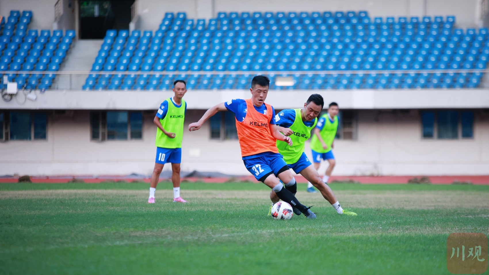 “好球!”“防守!”遂宁体育中心足球场上,球队训练声此起彼伏。