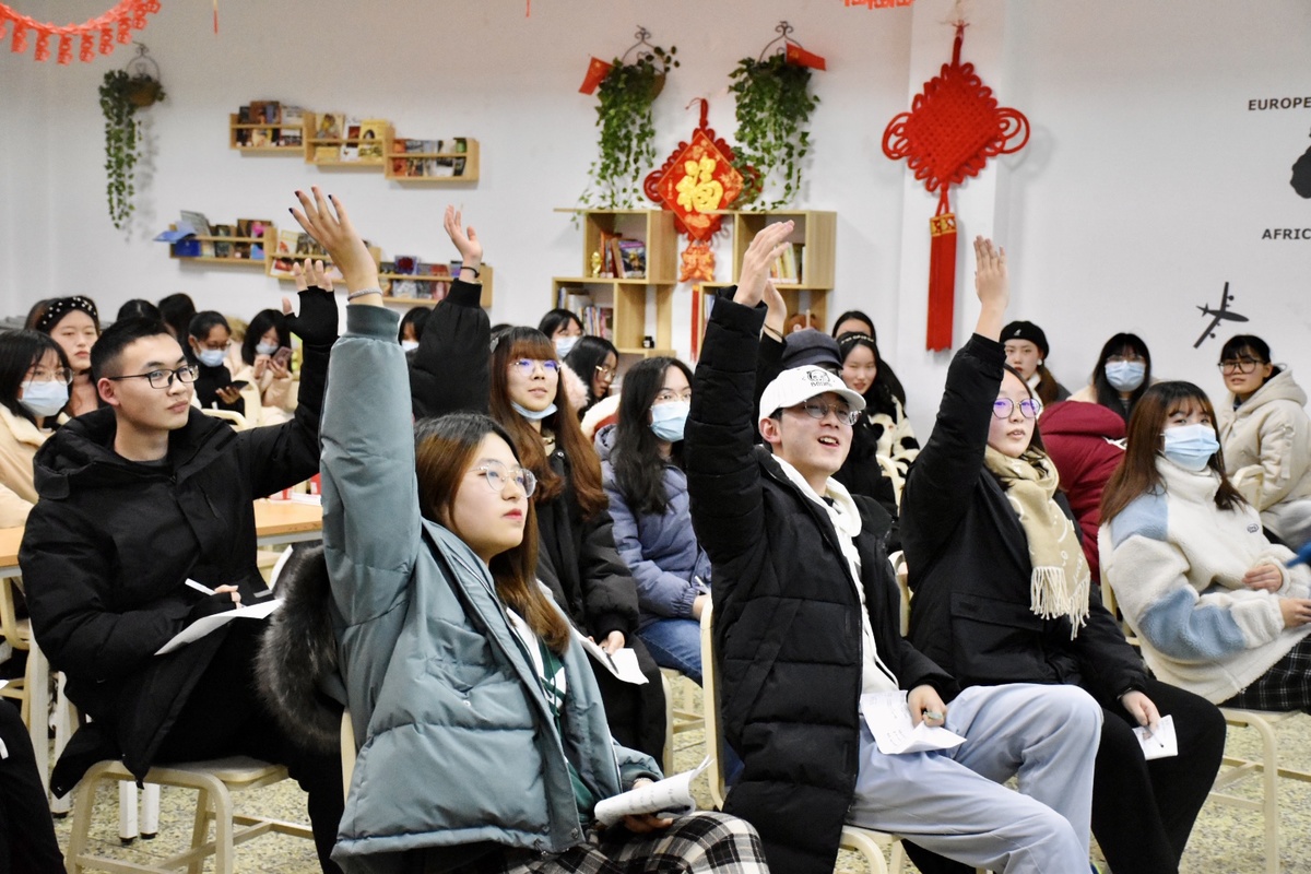 “俄罗斯国旗由上到下三种颜色依次是什么,请抢答”“白、蓝、红”“抢答正确,第二小组加10分。”又到高校期末考试季,日前,一场特别的期末考试在西南石油大学外语角举行。
