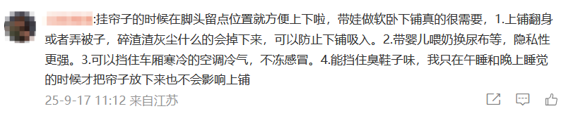 也有网友理解安装床帘等遮挡物的行为,这样可以保护隐私。