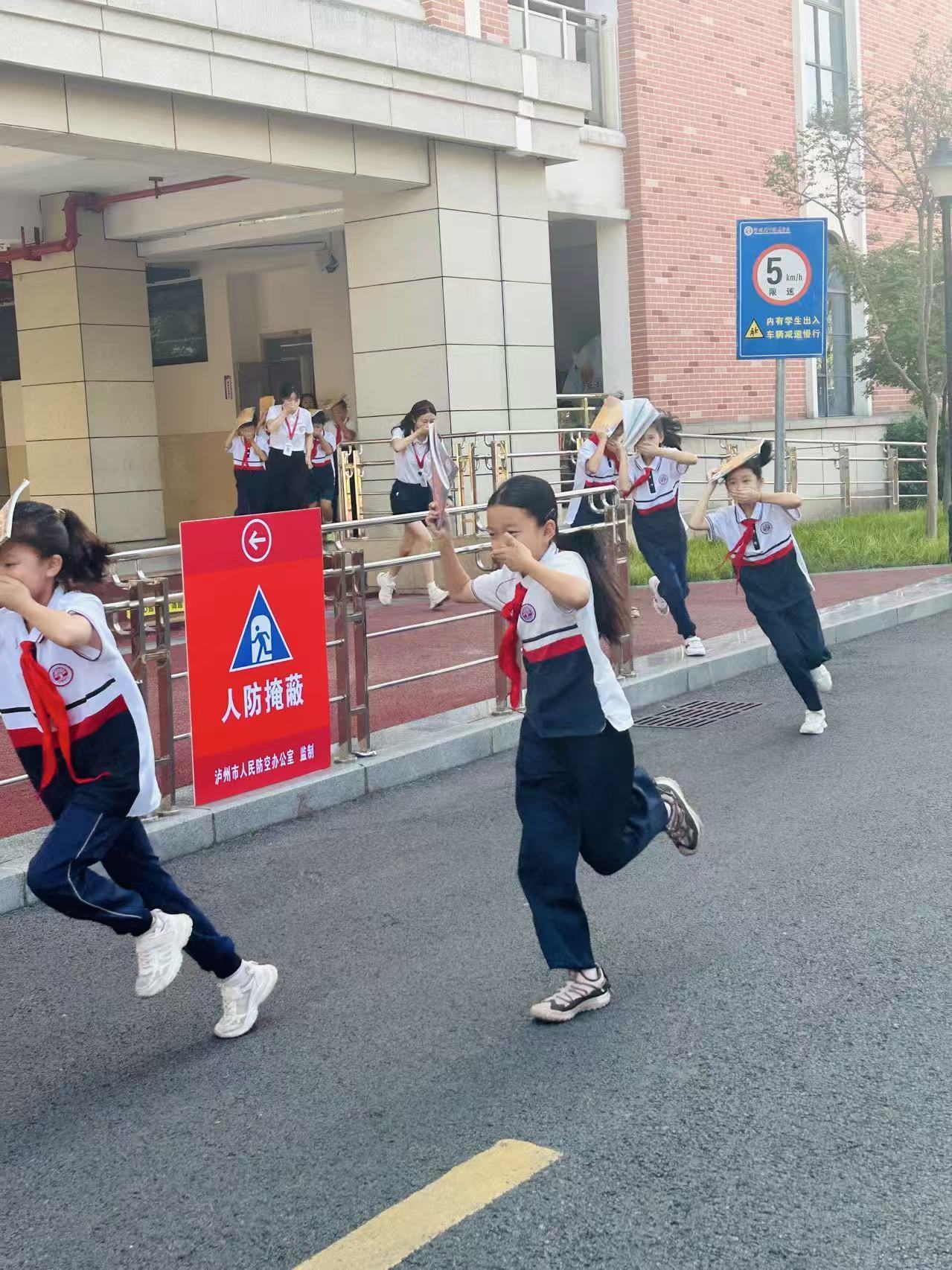 上午9时20分,泸州高中附属学校内,急促的防空警报骤然响起,瞬间打破校园的宁静。听到警报后,同学们在老师的有序组织下,迅速按照预定路线疏散至防空地下室,精准模拟躲避“轰炸”的应急场景。