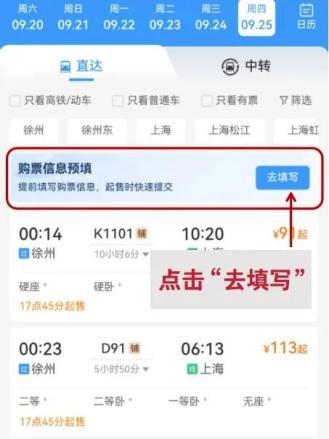 第一是购票信息预填。在车票起售当日的起售时间之前,进入车票购票界面,车票信息的上方有一个“购票信息预填”板块,旅客可以预先填写购票信息,在起售时第一时间就能提交,即可进行排队占座,热门时段抢票“快人一步”。