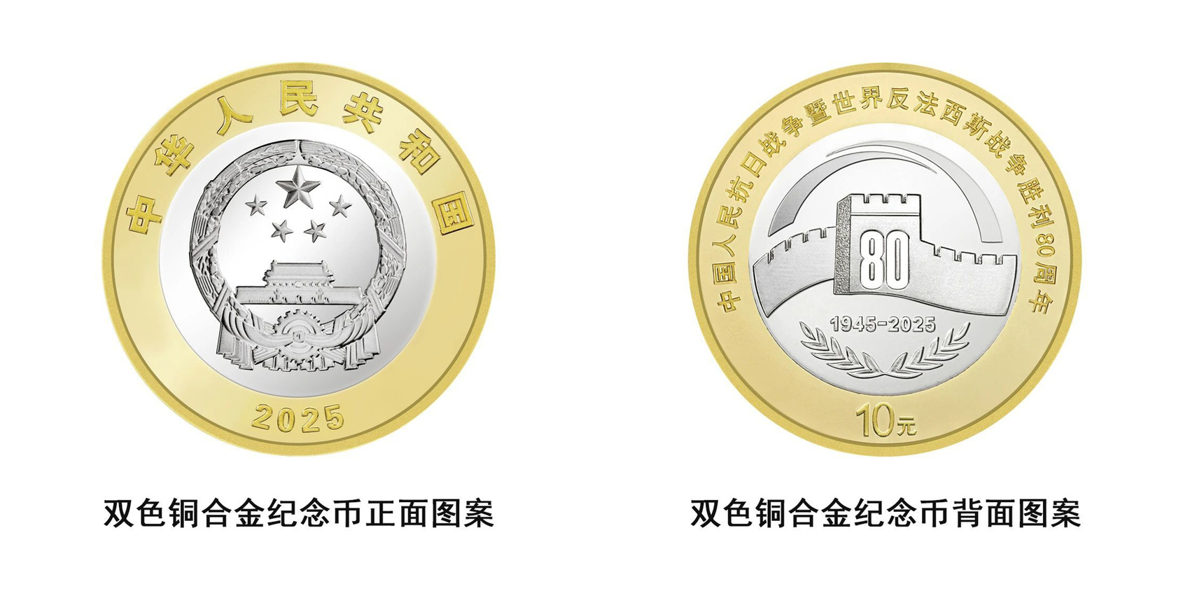 本次发行的中国人民抗日战争暨世界反法西斯战争胜利80周年10元双色铜合金纪念币,正面印国徽,背面是抗战胜利80周年纪念活动标识,全国总发行量8000万枚,四川共计分配了194万枚。