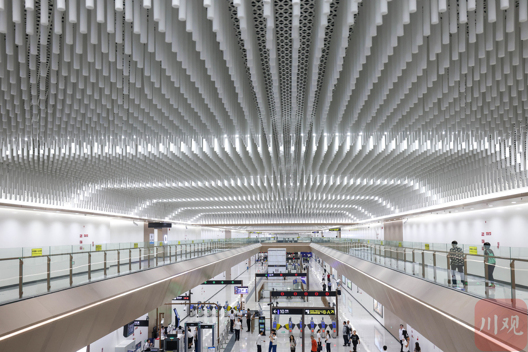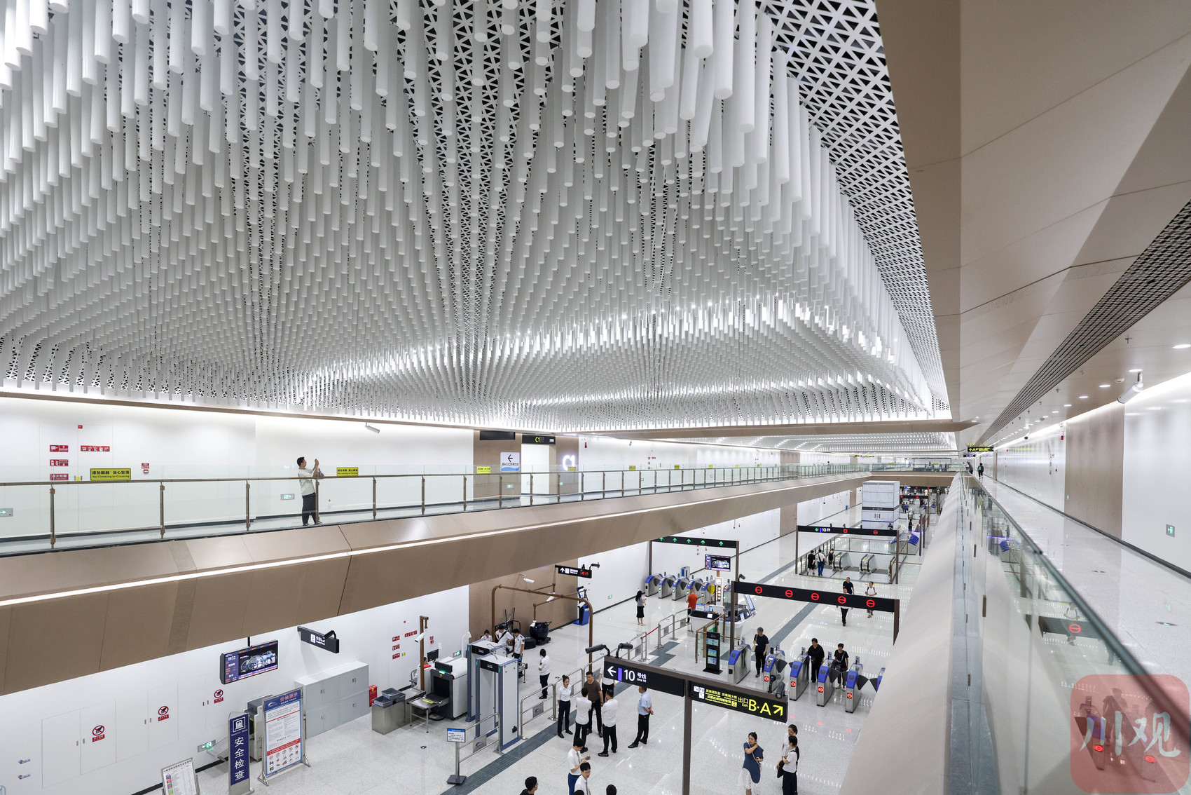 两条线路的车站装修兼具功能性与文化性:17号线二期以“浮光掠影,记忆成都”为主题,通过古韵今风的设计呈现儒雅大气的城市底蕴;10号线三期连接武侯区与青羊区,沿途串联多处文化地标,以“凤舞九天”为设计主题、“锦绣祥云”为风格定位。“我们希望通过建筑语言诠释中国气派、巴蜀风采与成都魅力,让车站成为流动的文化长廊。”中铁上海院成都轨道交通10号线三期工程总工程师沈海宏表示。