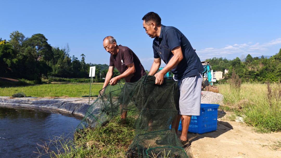 邻水县柑子镇磨盘村稻虾共生示范基地业主陈绪美说:“我们虾子从九月九日上市到现在已经出了一千多斤,有一半都是之前的老客户复购,今年也不断有更多的新客户陆续向我们采购。”