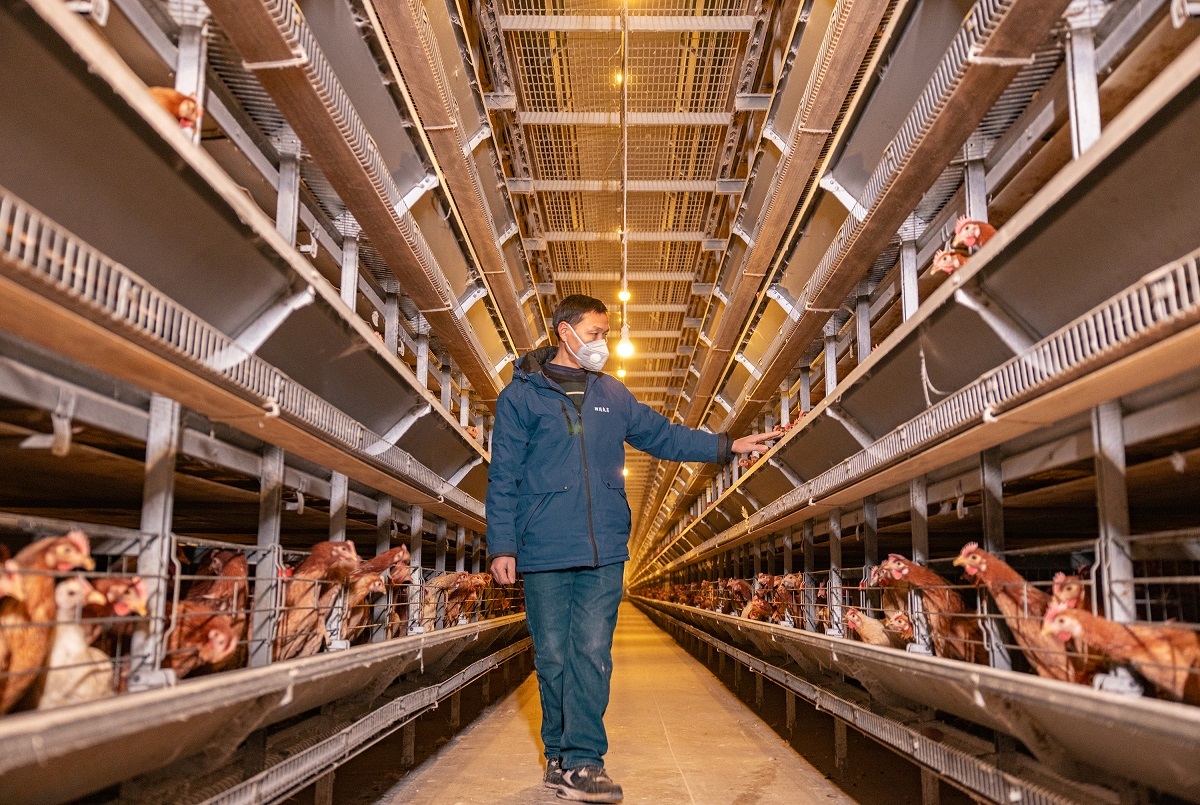 如今的基地,20万羽鹌鹑住进“楼房式”圈舍,喂料、控温等全由智能设备完成,4名工人即可承担喂养、清粪、分拣全流程,日产量达3600斤(约18万枚)。