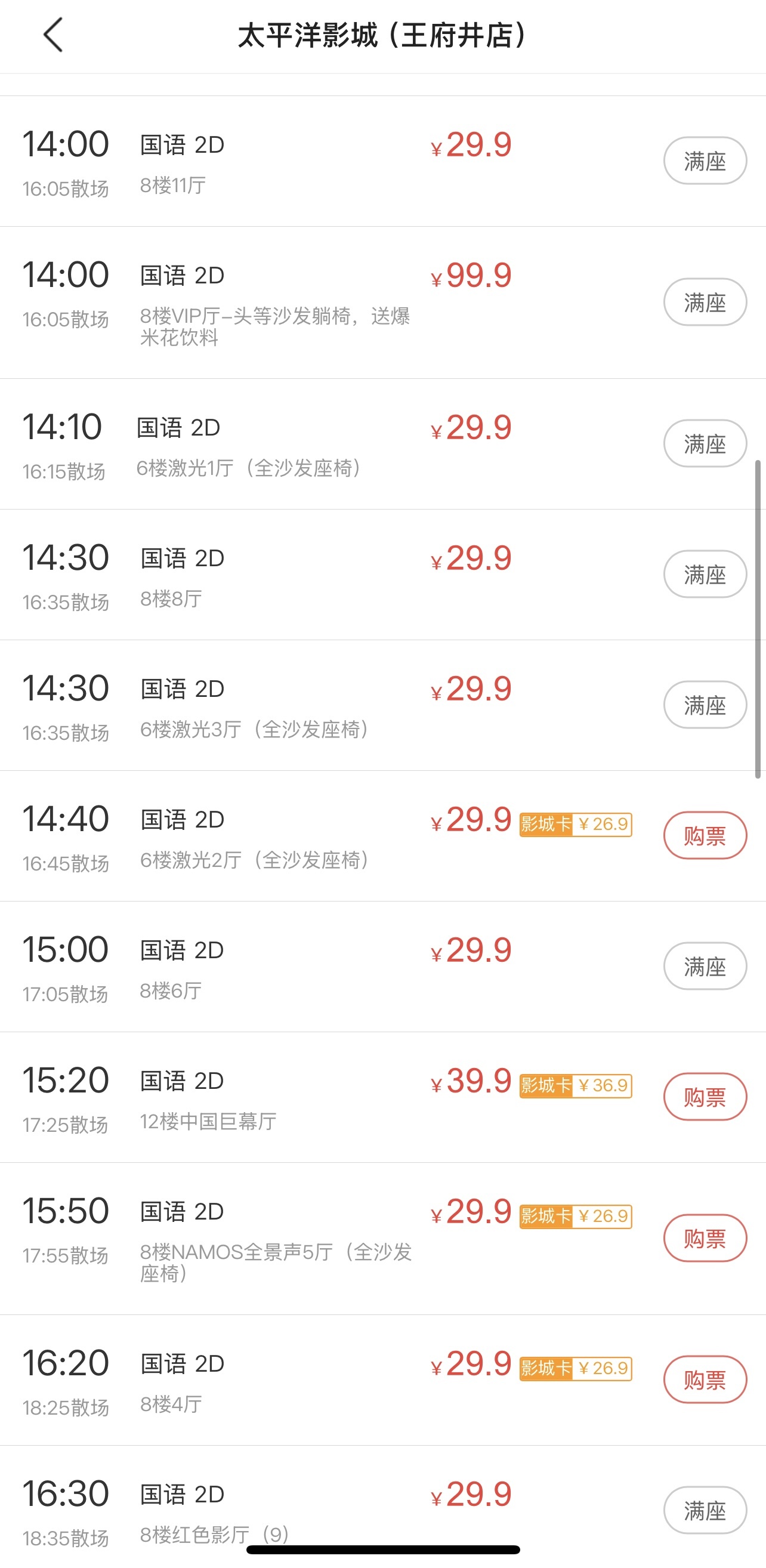 多场次显示满座