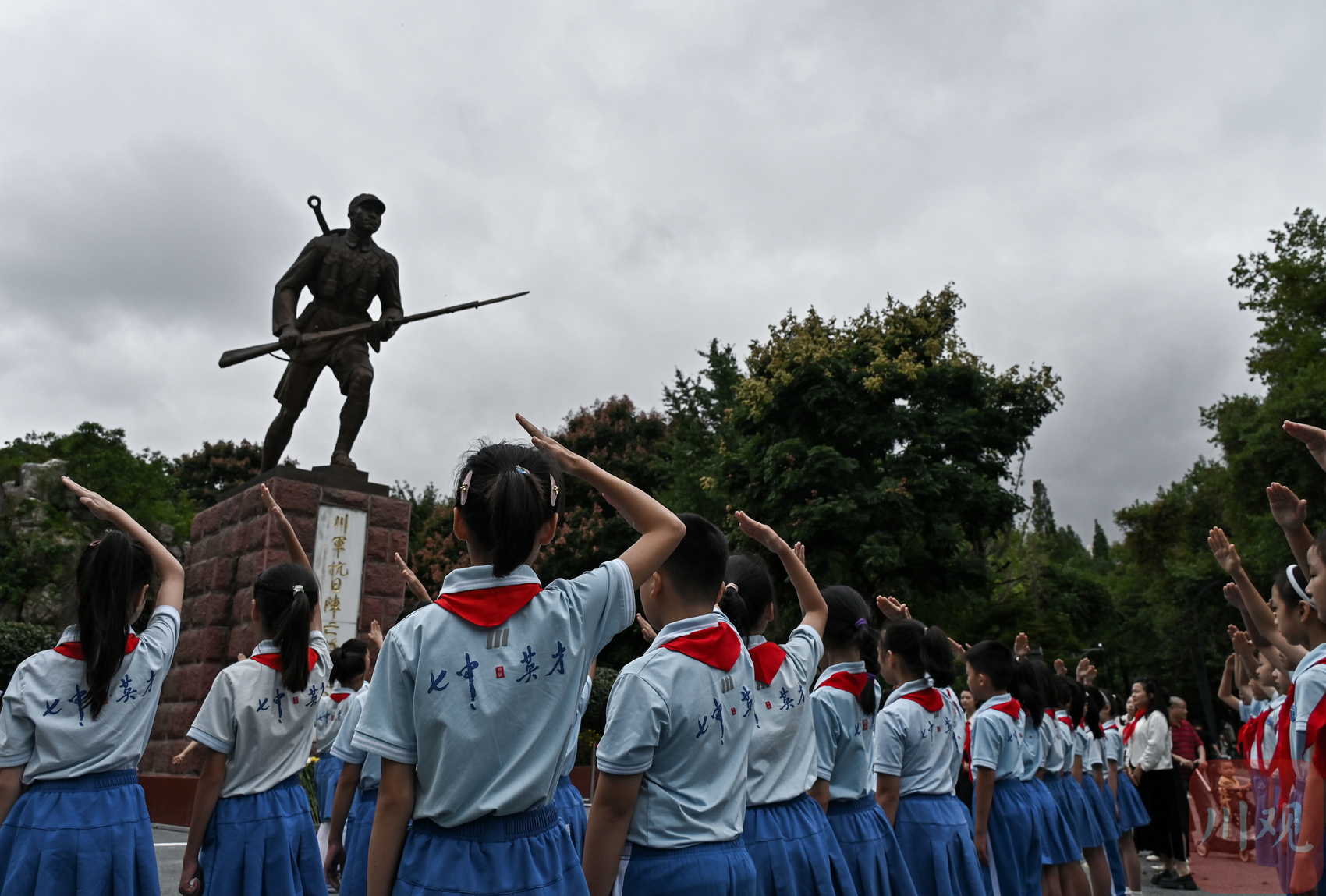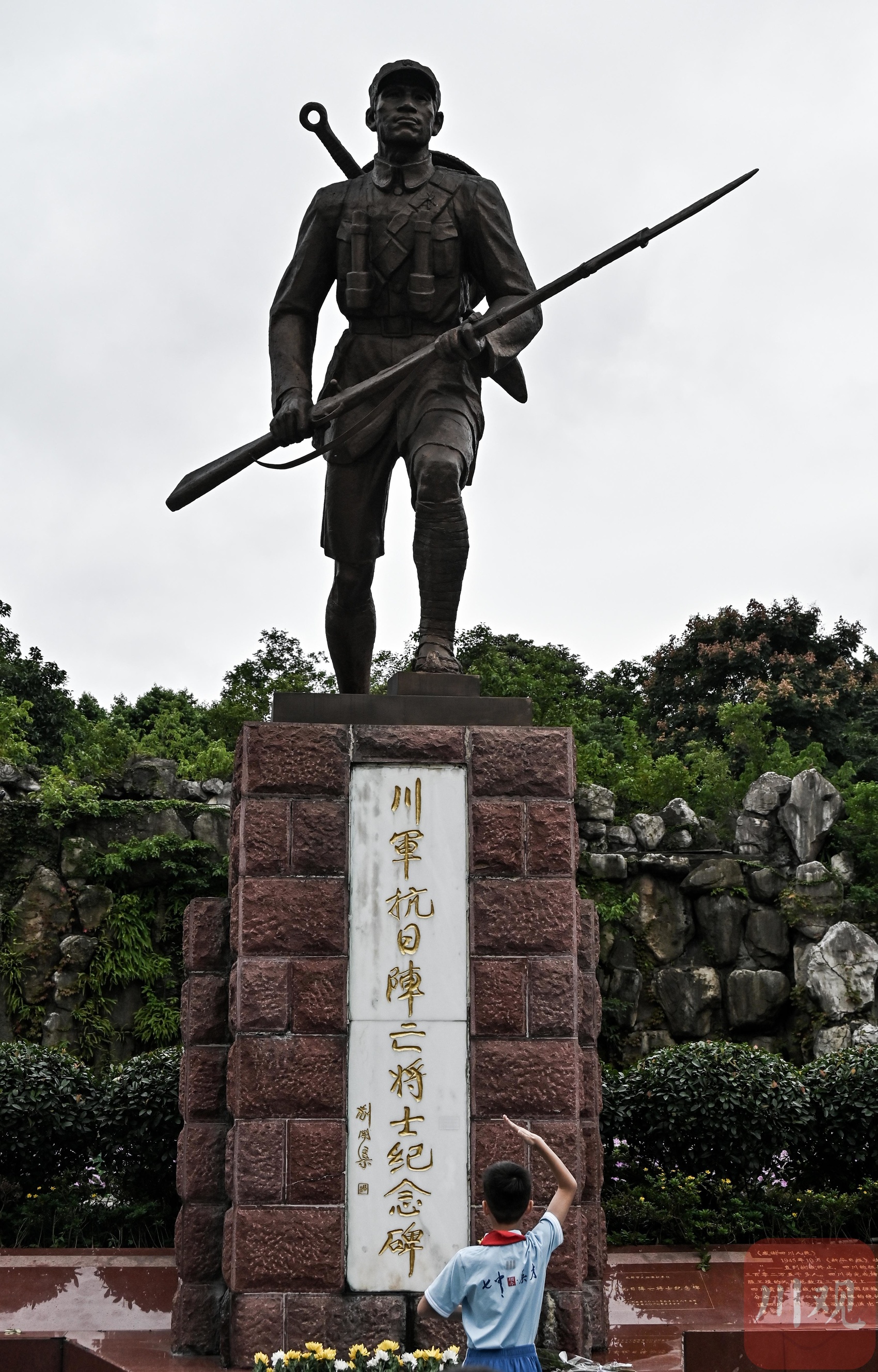 在这个特殊的日子里,位于成都市人民公园内的川军抗日阵亡将士纪念碑前,众多市民、学生自发前来瞻仰缅怀,敬献鲜花,接受爱国主义教育。
