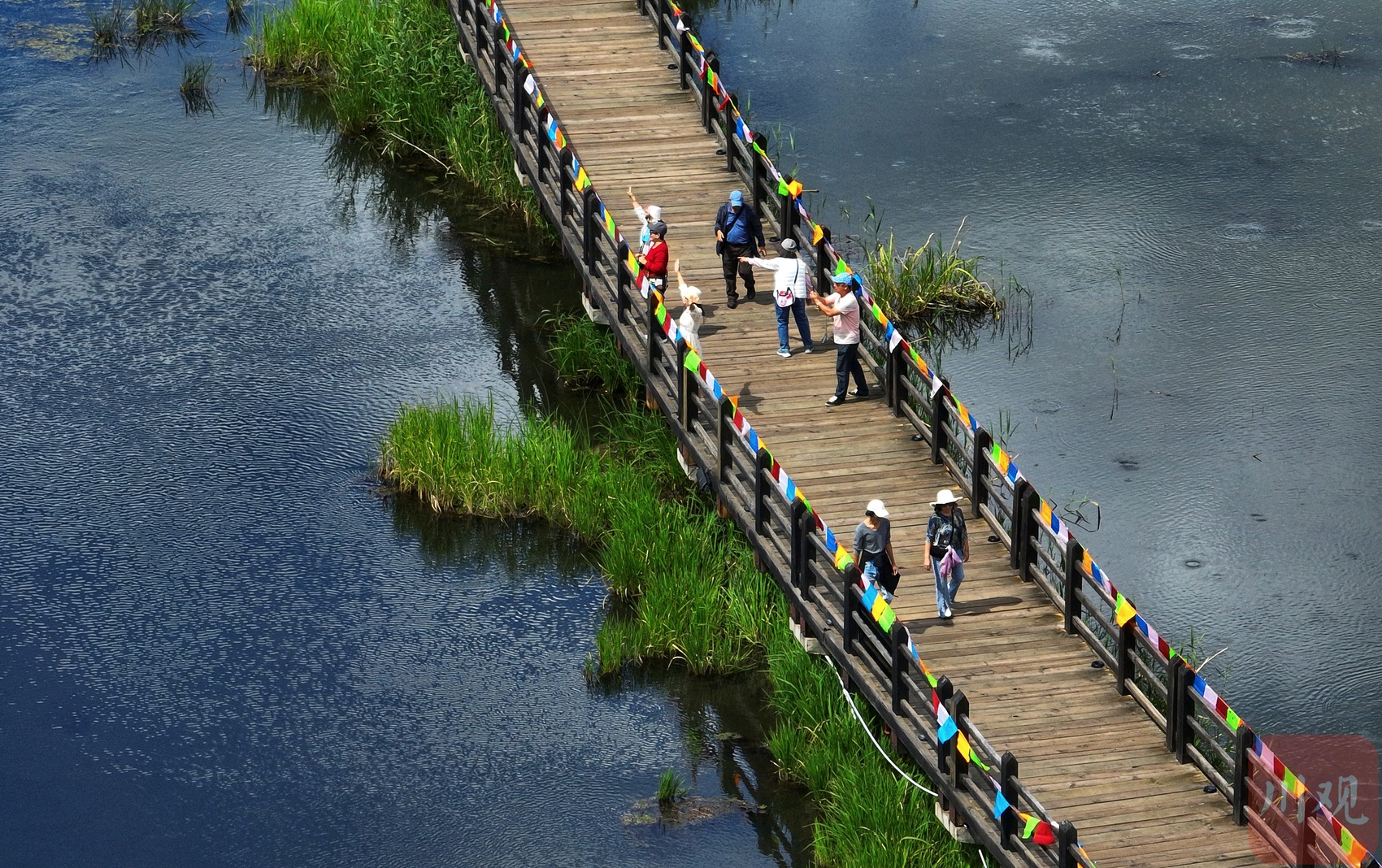 初秋的泸沽湖,天高云淡,湛蓝湖水与澄澈天空无缝衔接,晕染出“水天一色”的澄澈画卷。9月16日,泸沽湖草海景区的“走婚桥”上,迎来不少游客驻足游览、沉浸式体验。这座全长不到300米的木桥,是泸沽湖草海区域唯一一座连接湿地的桥梁,更是摩梭人传统婚俗文化的重要象征。