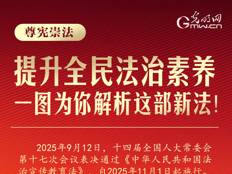 今年9月12日,十四届全国人大常委会第十七次会议表决通过《中华人民共和国法治宣传教育法》,自今年11月1日起施行。这是我国关于全民普法工作的专门性法律,“习近平法治思想”首次被明确写入法律。
