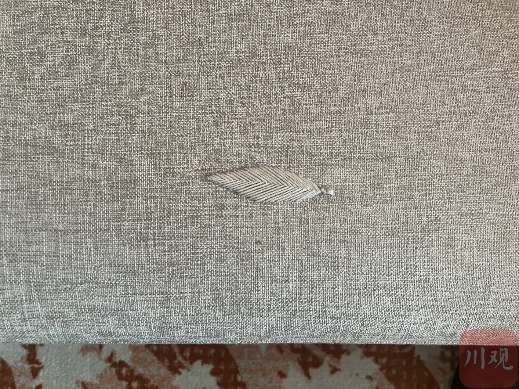 思索片刻,宋成杰决定用针线进行缝补。“我选择了和沙发颜色相近的线,根据破洞的形状,缝补了一片树叶。”宋成杰说,不到一小时就完成了补救,效果也很好,几乎看不出来。