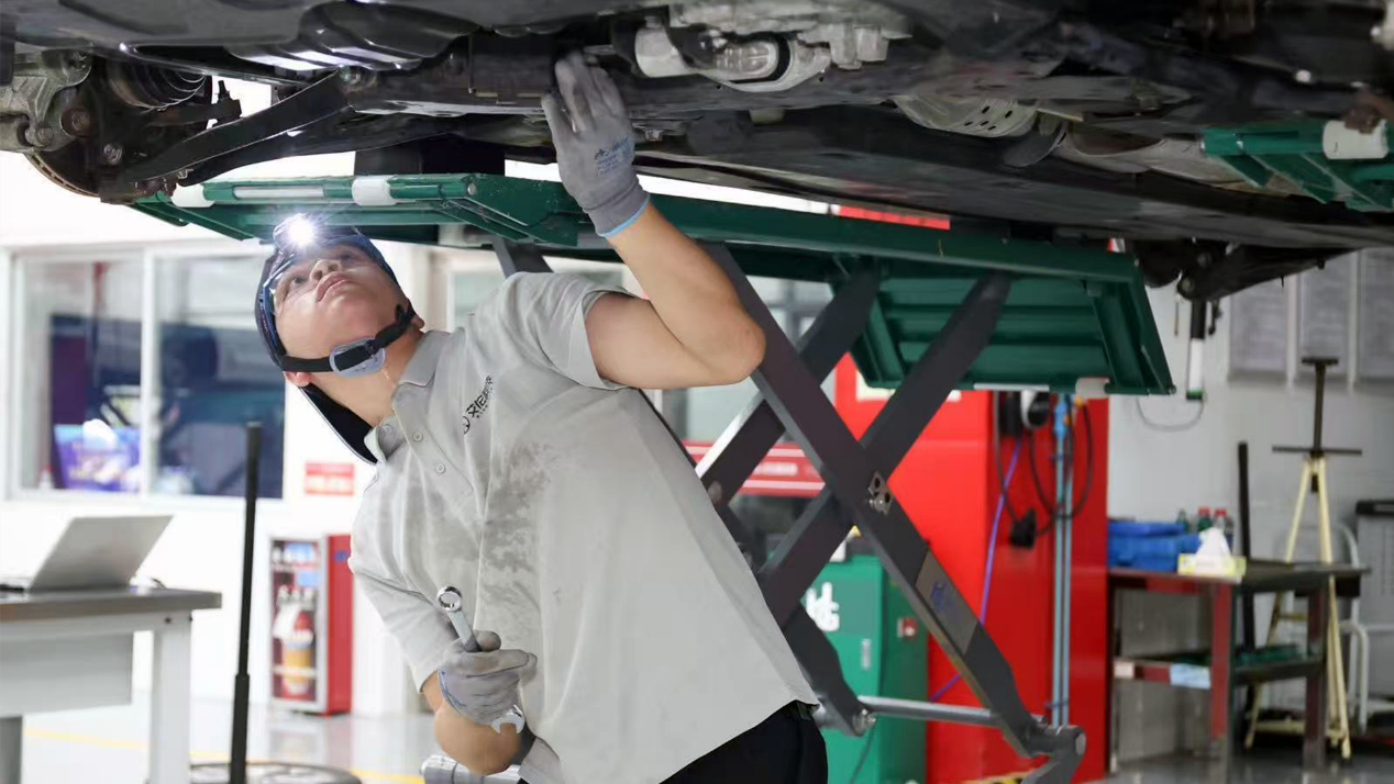 清晨的实训车间里,汽车技术项目选手朱恒生正盯着智能网联模块的检测屏幕,双手在接口处反复插拔,专注调试新能源汽车电池管理系统,指尖在故障诊断仪上灵活操作。