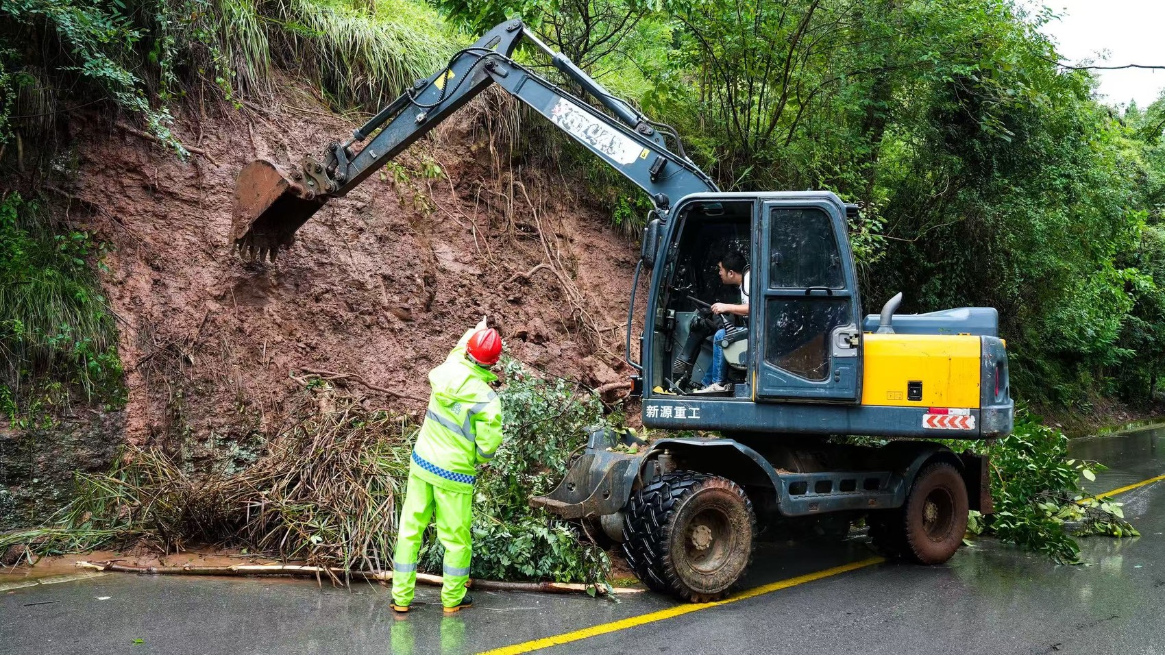 受本轮强降雨影响,9月16日,宝清路山洪暴发,导致沿线出现30余处山体垮塌,道路一度阻断。当地政府出动多台挖掘机、推土机进行抢修,第一时间保障沿线村民出行。