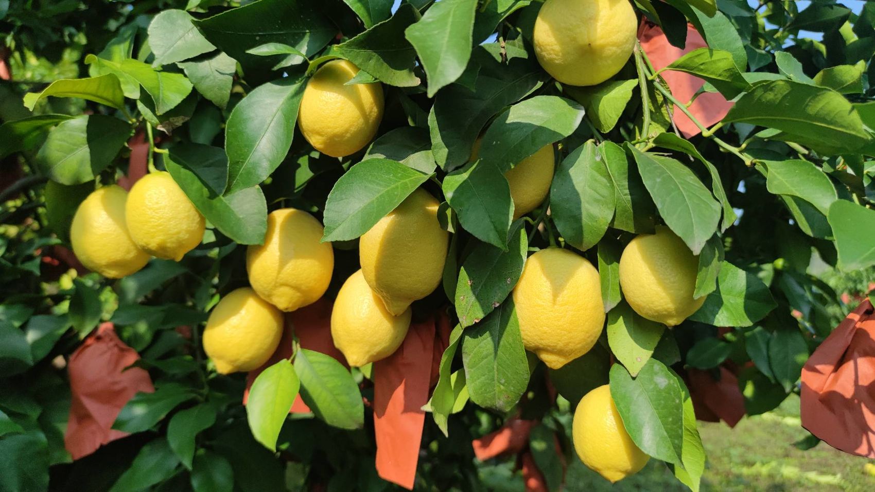 眼下,安岳柠檬陆续进入采摘期。记者在资阳市安岳县乾龙镇的千亩柠檬绿色生产基地看到,枝头挂满套着木浆纸袋的柠檬。普源农业绿色基地负责人陈海军介绍,待果子再长大一些便可采摘,“今年是基地第三年挂果,产量比去年更高,品质也更好。”