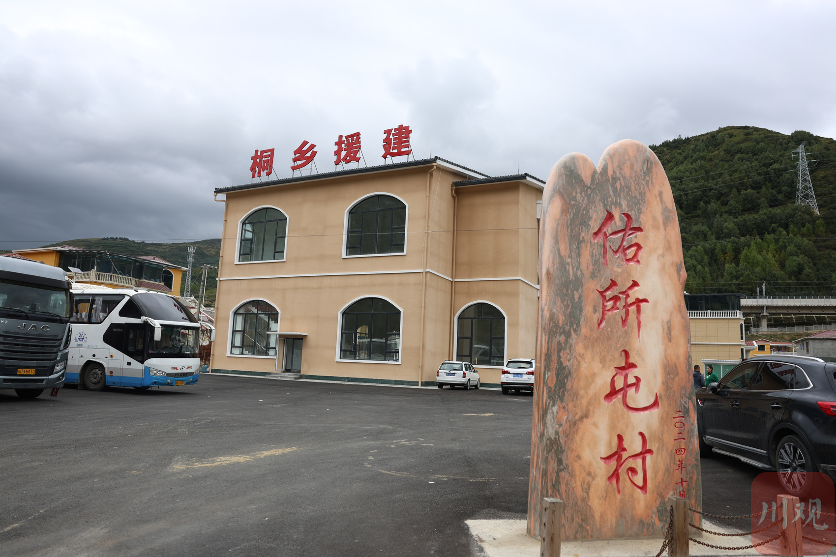 佑所屯村是修建川青铁路松潘站时政府统一规划建设的拆迁安置点。得益于浙江对口支援工作,桐乡市对口援建佑所屯村,投入400多万元资金用于建设基础设施,包括游客中心广场建设、村内道路维修、饮水管网更换、电网建设、民宿住房修建等。