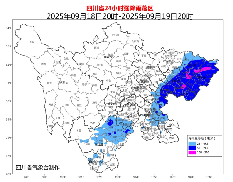四川省气象台9月18日15时35分发布暴雨蓝色预警:9月18日20时到19日20时,达州、广安、巴中、南充、遂宁5市,资阳、内江、自贡3市东部,宜宾、泸州2市北部,乐山市南部及凉山州北部有大雨到暴雨(雨量40~80毫米),局地大暴雨(雨量120~160毫米),最大小时雨强30~50毫米。