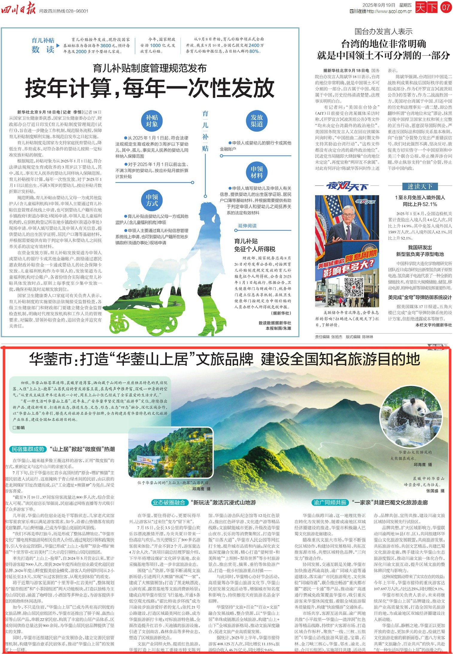 9月19日,《四川日报》刊发《华蓥市:打造“华蓥山上居”文旅品牌 建设全国知名旅游目的地》,川观新闻予以转载如下: