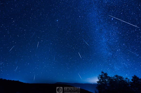 12月14日凌晨,在攀枝花市仁和区平金沙江国家森林公园拍到双子座流星雨划破夜空。