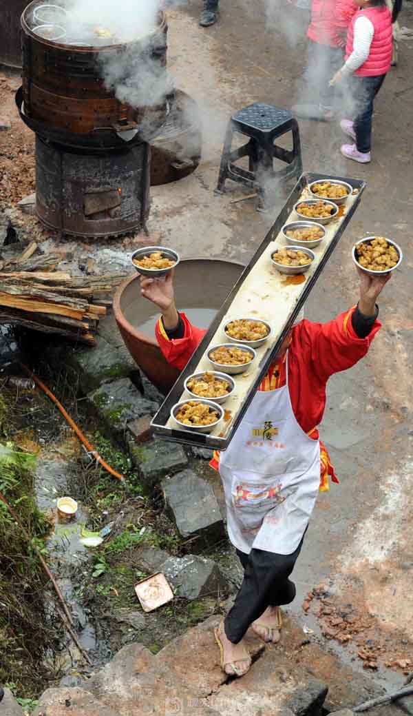 1月15日,泸州市合江县“打盆”技艺传承人陈长发表演绝技。40年里他顶了400多吨食物。