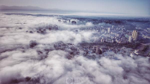 5月4日早晨,广安市城区现平流雾景观,美如仙境。
