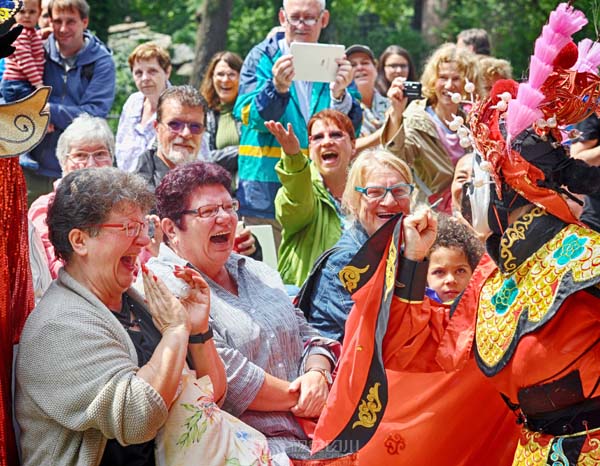 7月7日,四川成都文化周亮相柏林,变脸绝活让观众现场体验四川文化。