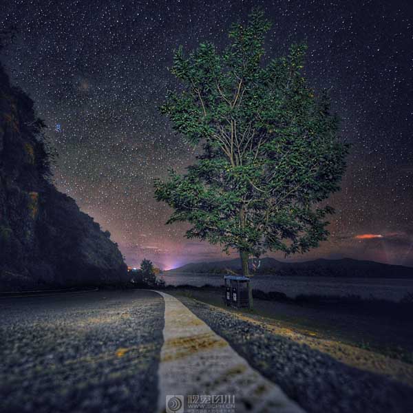 10月14日,凉山州泸沽湖,星空下的一棵树。