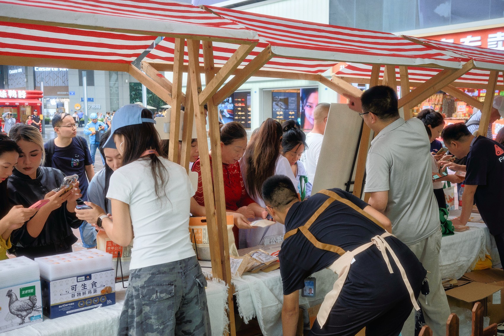 活动当日,春熙路广场人潮涌动,市民游客热情参与,品尝购买现场展示的内江黑猪、川西牦牛肉、烧鸡公调味料、辣卤鸡心等优质农产品。锦江宾馆、四川康辉等锦江区文旅企业提供消费、旅游产品优惠券、开心麻花剧场赠送演出票等,激发了市民游客的参与热情。