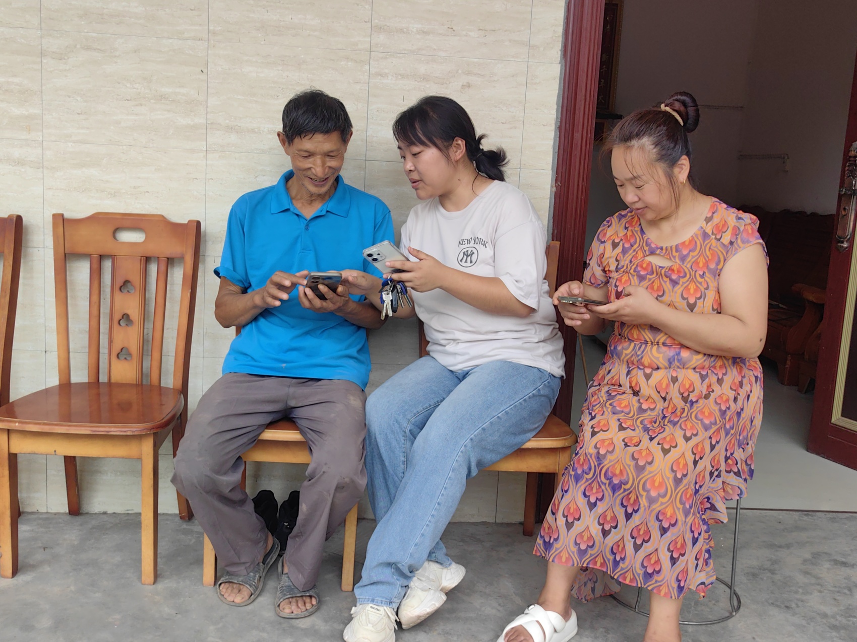 村里的年轻人指导老年人使用“好德行”平台。周玉琴 摄