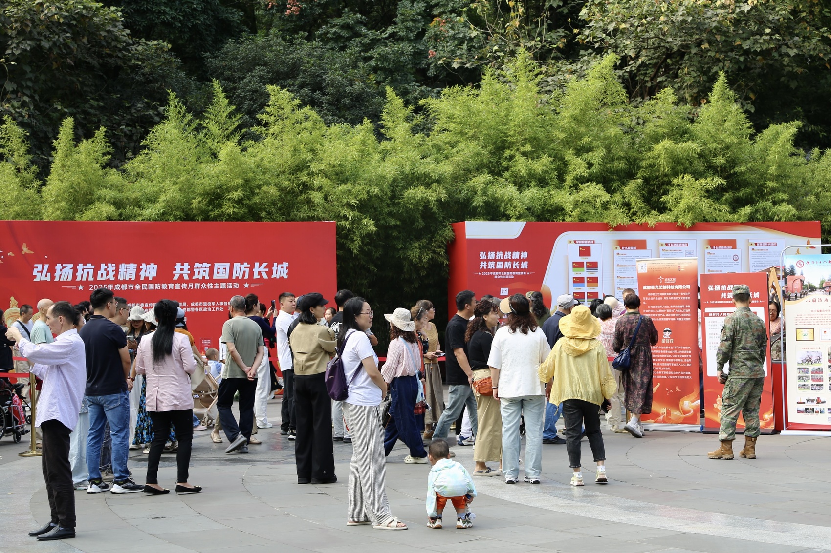 每年9月的第三个星期六是全民国防教育日。9月19日,以“弘扬抗战精神 共筑国防长城”为主题的成都市全民国防教育宣传月群众性主题活动在该市人民公园启动,旨在弘扬爱国主义精神和伟大抗战精神,进一步激发青少年及市民群众对国防政策、历史知识的学习热情,增强全民国防观念。