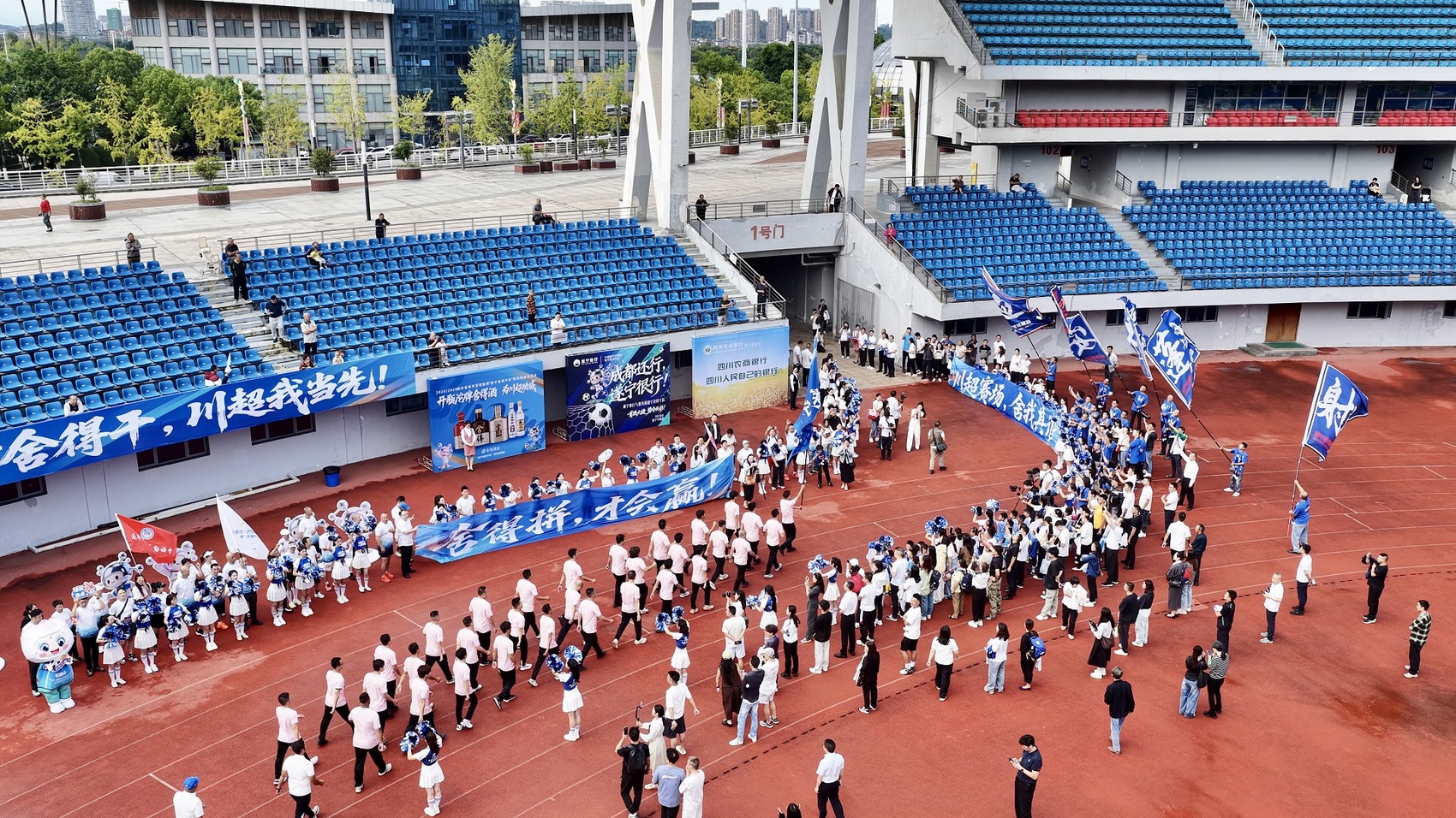 9月19日上午,遂宁舍得干队出征仪式在遂宁体育中心举行。在现场球迷此起彼伏的加油呐喊声中,30余名队员出征明日在成都的川超揭幕战。