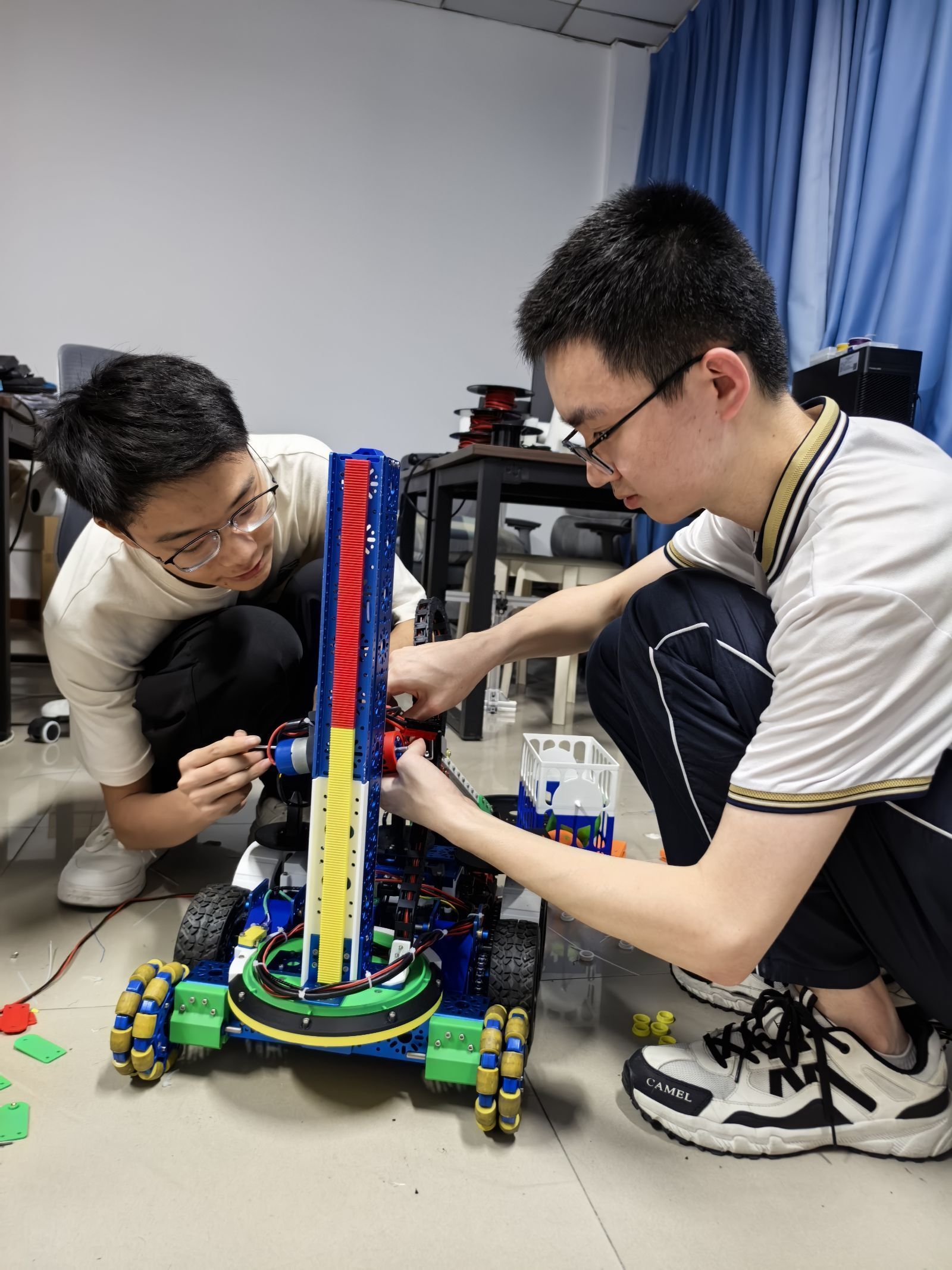 今年2月,第三届全国技能大赛四川省遴选赛的备战吹响冲锋号。陈彦兵已能独当一面,除了负责机器人的电气和机械拆装,还参与简单的路径规划以及相关的python编程工作。为应对比赛中机器人定位精度的难题,他和队友在实训室搭建了10多种模拟场地进行测试。训练期间,他的闹钟从早上六点调到五点半,每天带着面包进实训室,既要反复拆装机器人以确保其在各种场景下的稳定性,又要调试代码,直到凌晨才披着月光回宿舍,电脑里存着800多组路径测试数据,硬盘因反复存储调试视频而出现坏道。