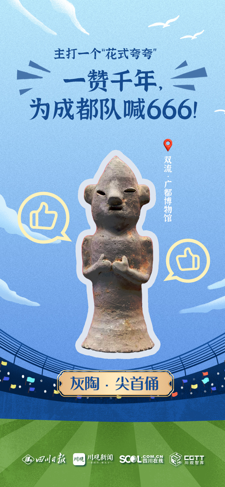 先说双流主场派出的“本土选手”,广都博物馆的点赞俑直接把应援玩出了新高度。那位举着千年没放下的手,提前练了三千年的加油姿势,就等成都队主场开赛,把“花式夸夸”焊在赛场上!手举得比裁判旗还高,那架势像在喊:“成都队踢到哪,我的赞就跟到哪!”