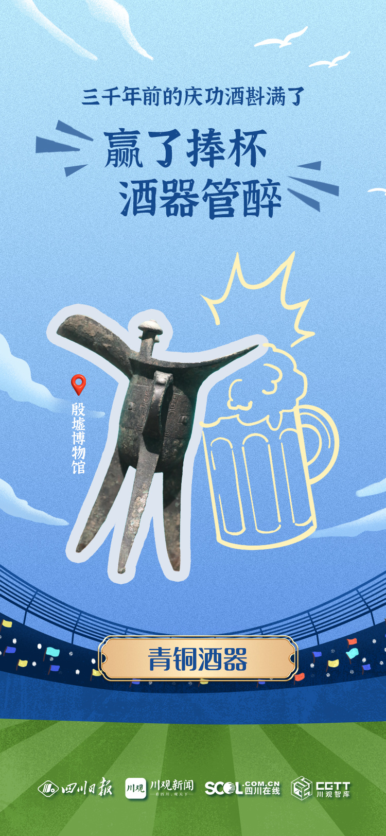 不管哪队赢,从殷墟博物馆来双流出差的青铜酒器都已经准备好——三千年前的庆功酒斟满了。