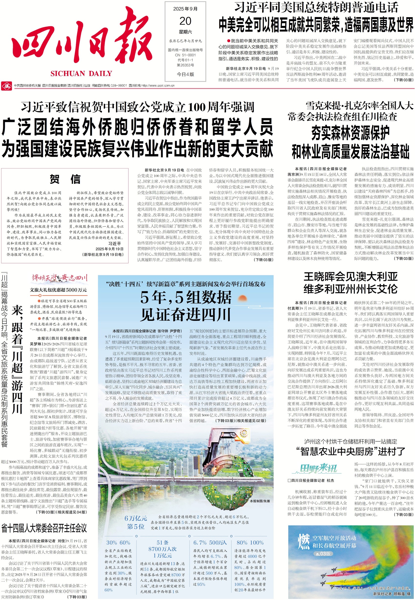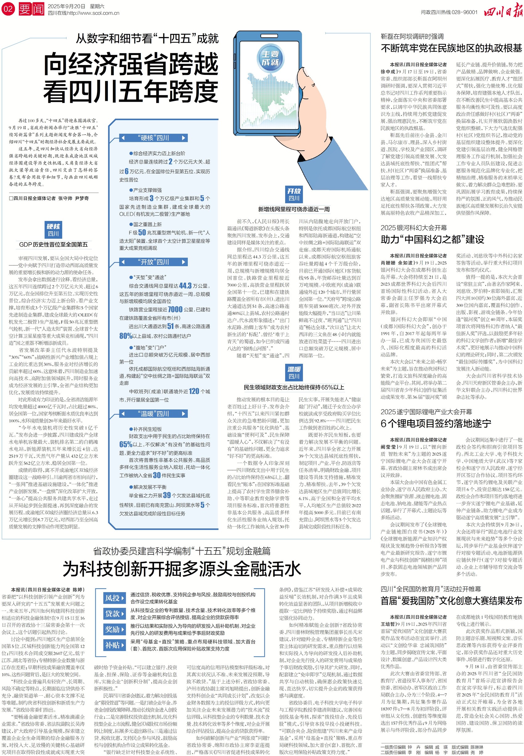 全省GDP超6万亿元,升至全国第5;综合交通线网总里程达44.3万公里,居全国首位......“十四五”将迎来圆满收官,今日一、二版,从数字和细节看“硬核”四川如何让“天堑”变“通途”、“腹地”变“门户”,又如何以民生保障“温暖人心”。