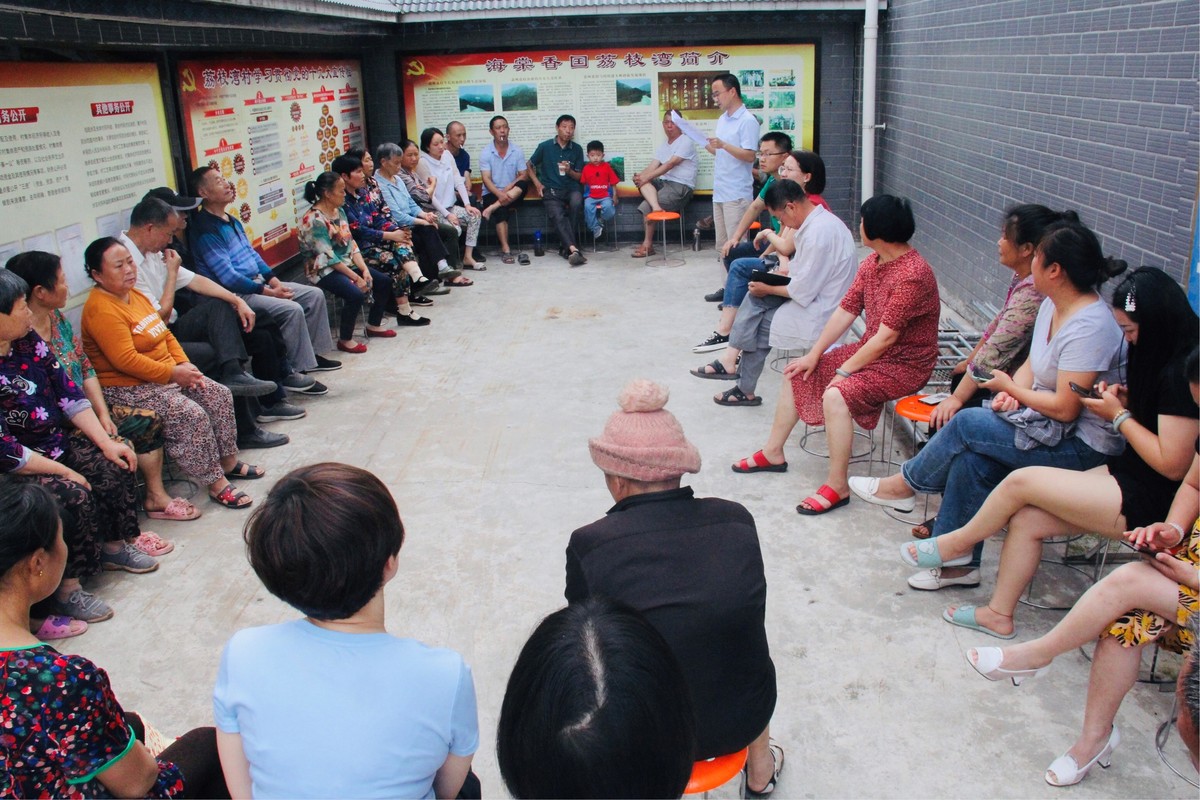 乐山市市中区荔枝湾村坝坝会,群众聆听“一镇一孝廉”人物情况 乐山市纪委供图