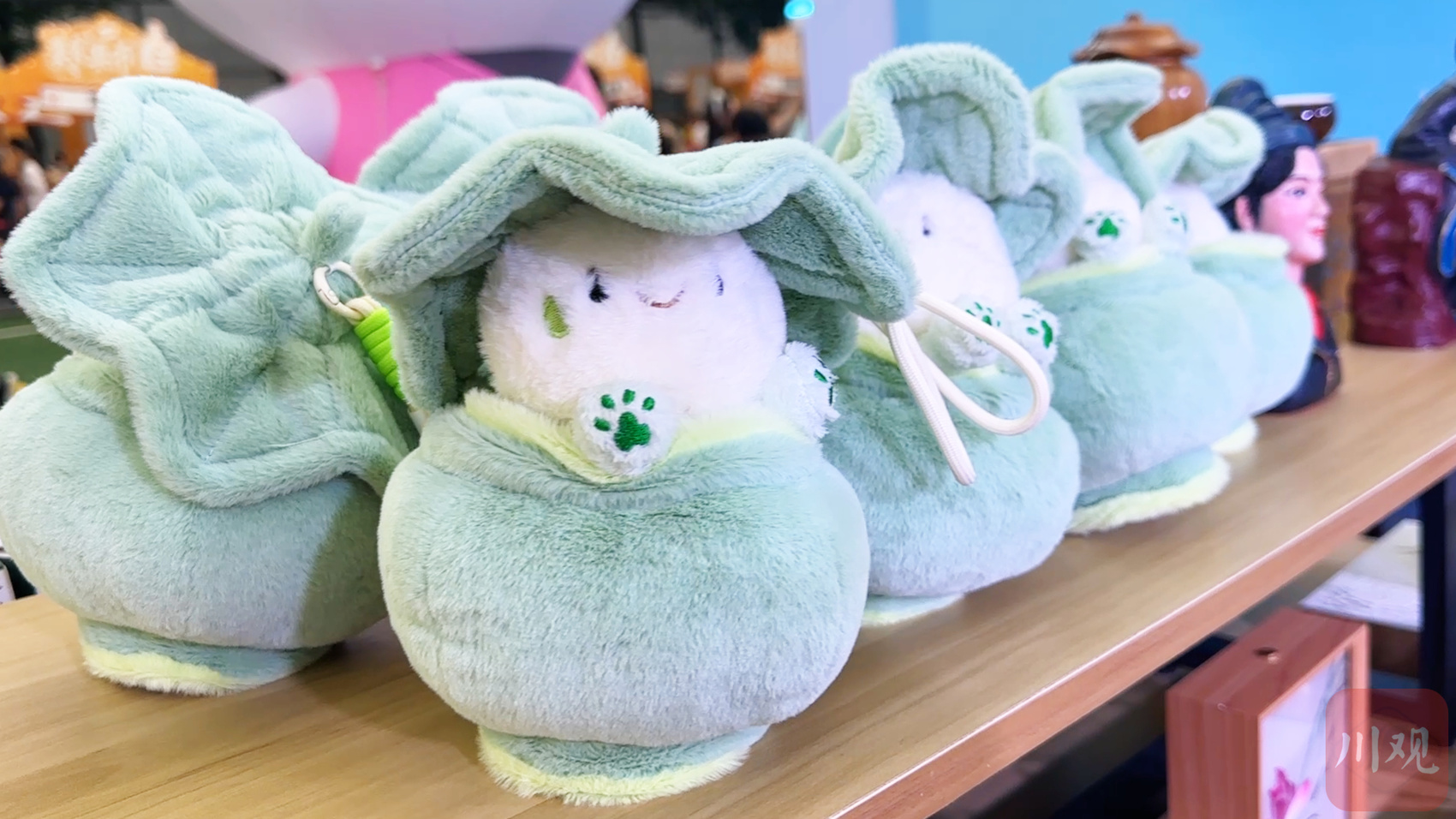 位于遂宁的四川宋瓷博物馆是中国唯一专题类宋瓷博物馆。这次揭幕战,四川宋瓷博物馆一共展示了青瓷摆件等近10种文创产品,其中包括一款名叫“罐会装”的毛绒玩偶文创产品。“这是我们根据博物馆镇馆之宝龙泉窑青釉荷叶盖罐设计的‘罐会装’毛绒玩偶文创产品,这次揭幕战上首次对外发售,希望带大家看到更多不一样的遂宁。”四川宋瓷博物馆宋小瓷文创区负责人谢津玉说。