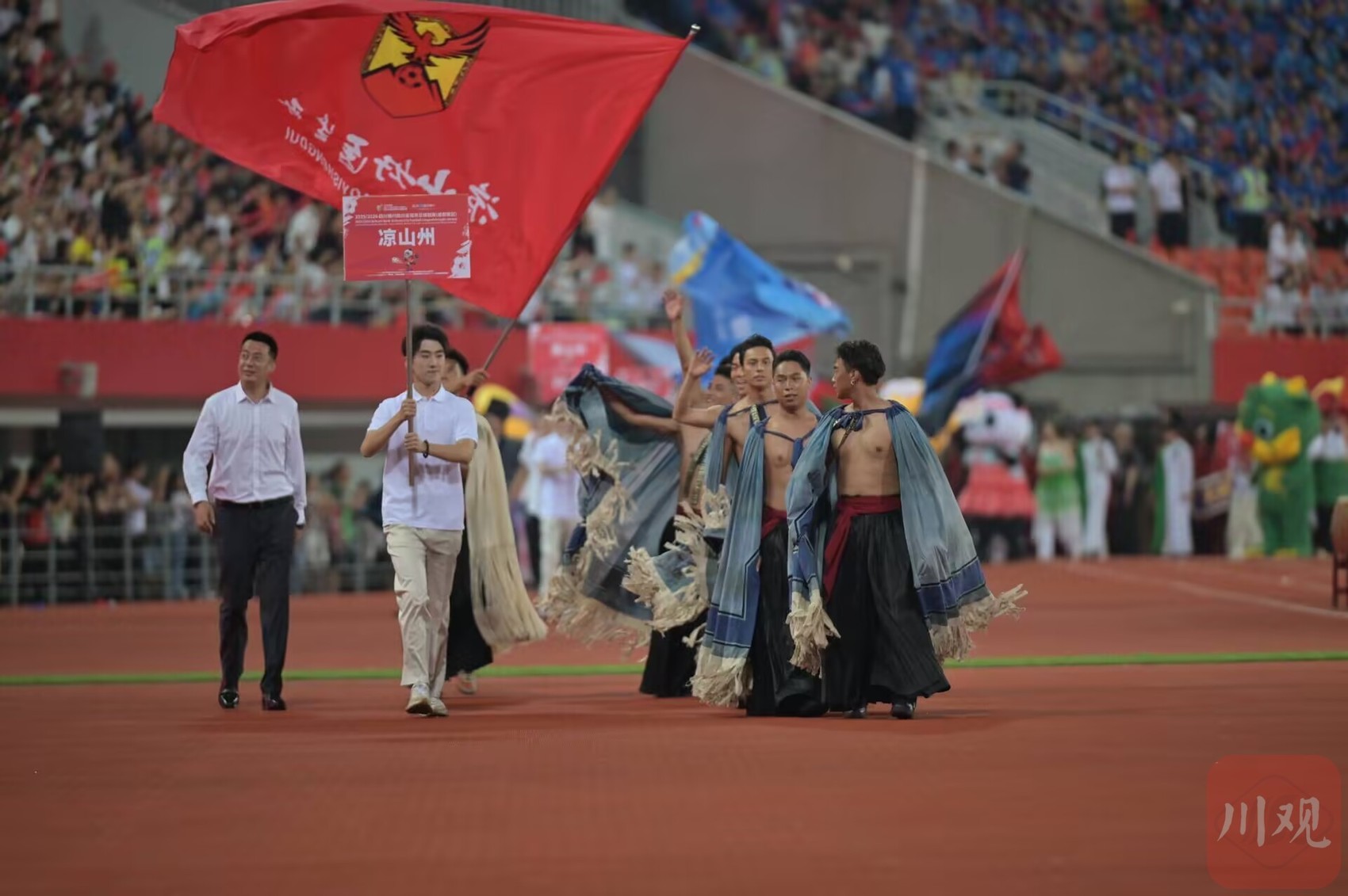 甘孜州代表队的民族舞蹈和凉山州代表队的彝族舞蹈,让观众感受到浓郁的民族风情。眉山代表队则展示了“三苏”文化,南充代表队的木偶戏也登上绿茵场。