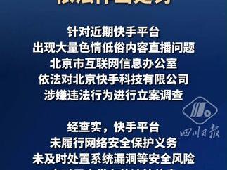 近日,针对快手平台未落实信息内容管理主体责任,在热搜榜单主榜扎堆呈现炒作明星个人动态和琐事类词条等不良信息内容,存在泛娱乐化倾向问题,国家网信办指导北京市网信办,依据《网络信息内容生态治理规定》等有关规定,对快手平台采取约谈、责令限期改正、警告、从严处理责任人等处置处罚措施。