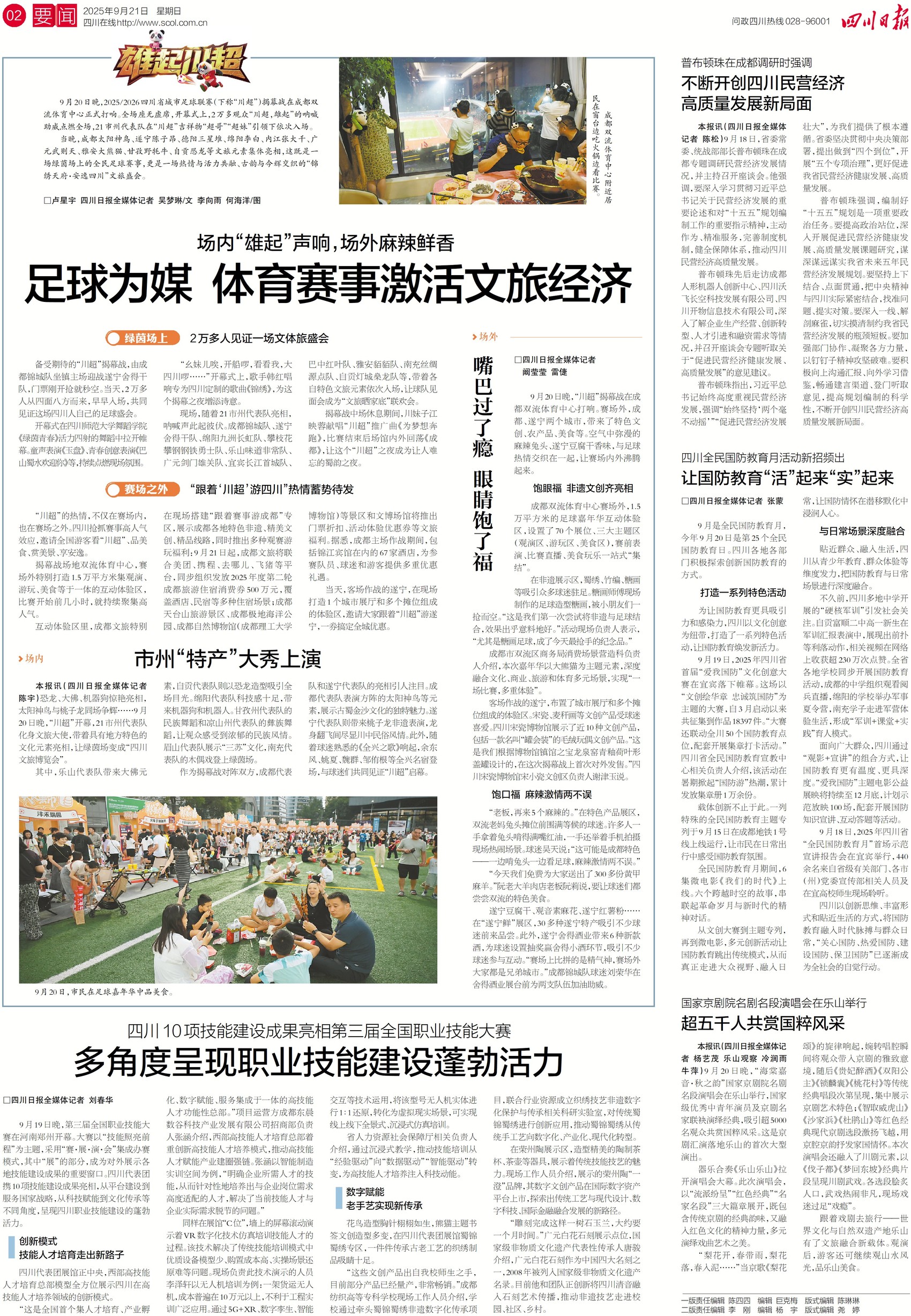 广元白花石刻、雅安藏茶、西部高技能人才培育总部模型……9月20日,中华人民共和国第三届职业技能大赛四川代表团技能成果展区,四川代表团携10项技能建设成果亮相,呈现四川职业技能建设的蓬勃活力。关注今日二版了解详情。