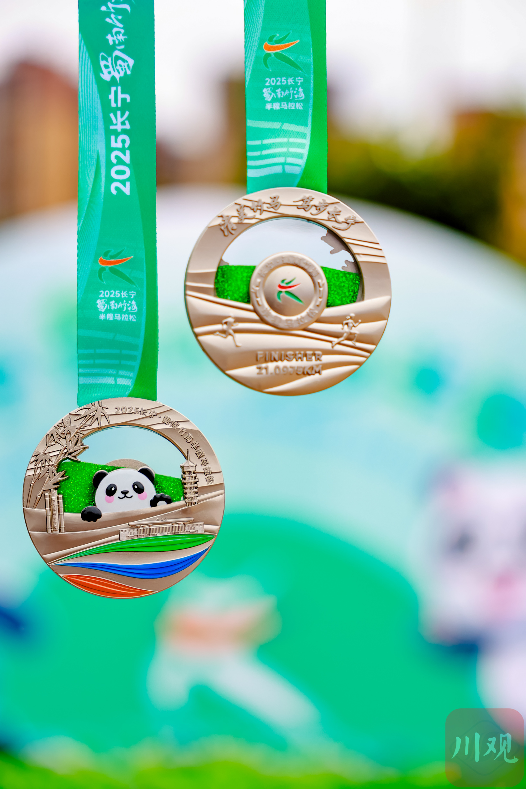 值得一提的是,此次完赛奖牌设计感满满。正面以立体浮雕呈现长宁地标,还有蜀南竹海中华大熊猫苑的熊猫形象,萌态十足;背面则描绘了一对青梅竹马相伴奔跑于竹海赛道的温馨场景,并铭刻不同组别公里数,为跑者留下专属纪念。