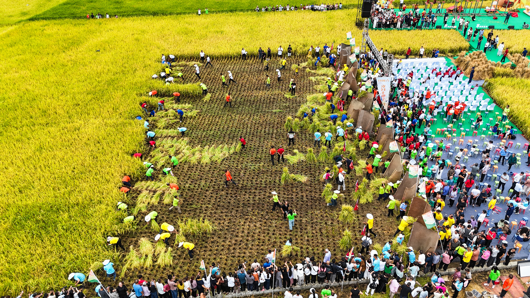 打谷比赛、抓鱼嬉戏,既是庆祝,也折射农耕文化的传承与创新。
