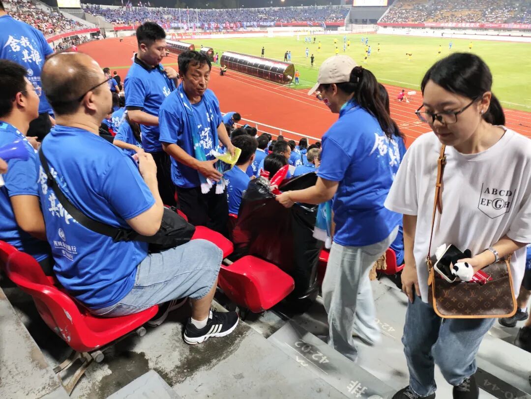 在散场时,观众席上的球迷并未匆忙离场或出现混乱。大家不约而同地收拾好座位旁的垃圾,在带走随身物品的同时,自觉将废弃物一并带走,有序退场。