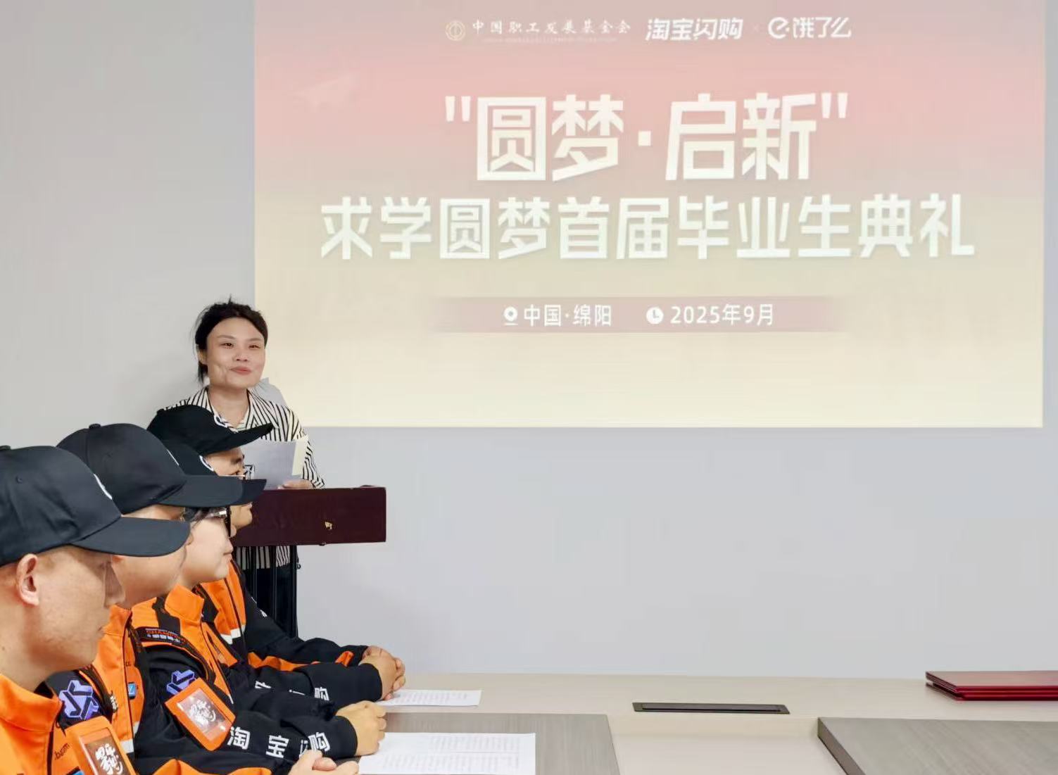 9月19日,饿了么联合中国职工发展基金会发起的“蓝基金·求学圆梦”项目,迎来了第一批毕业的城市骑士。淘宝闪购、饿了么在四川绵阳为毕业骑士举办“圆梦·启新”求学圆梦首届毕业生荣誉典礼。