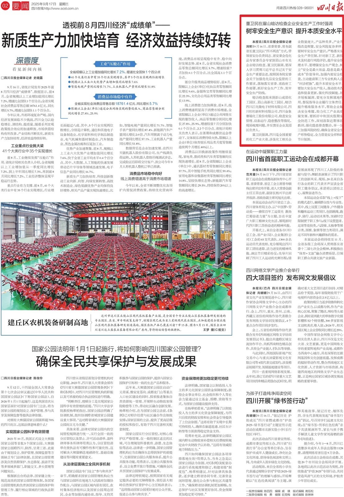 一、要闻:董卫民在眉山暗访检查企业安全生产工作
