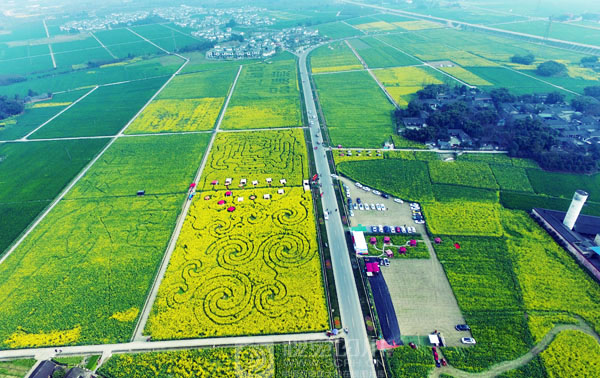 2月28日,位于成都崇州市白头镇境内拍摄的稻香旅游环线风景。一路上湿地树绿水静,竹影婆娑、农舍黑瓦白墙,一步一景……游客们还可以在花海品尝“花海餐厅”的美食。